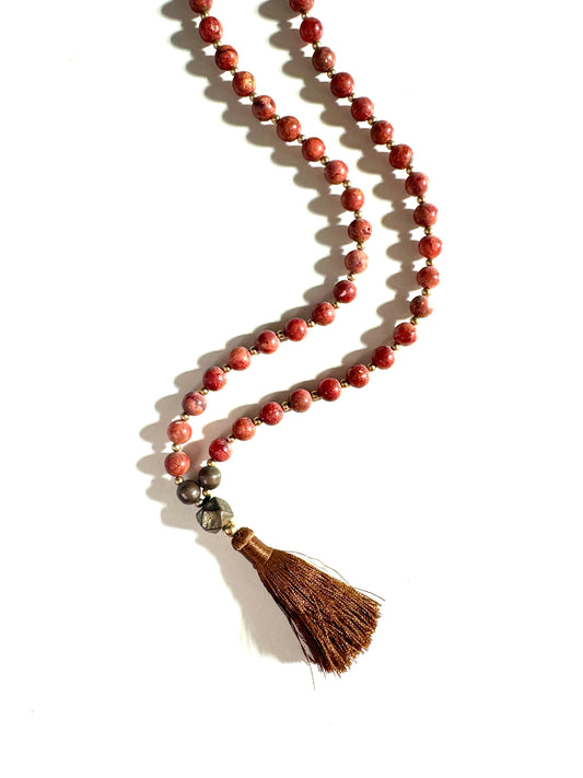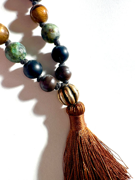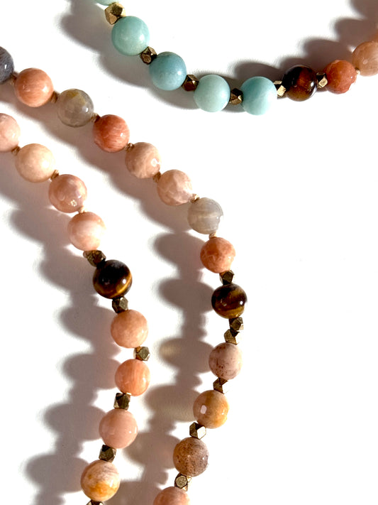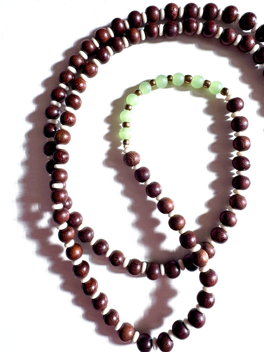 A mala necklace is a meaningful tool for meditation and mindfulness, featuring 108 beads traditionally used to count mantras, breaths, or intentions, crafted from natural materials like gemstones or wood.