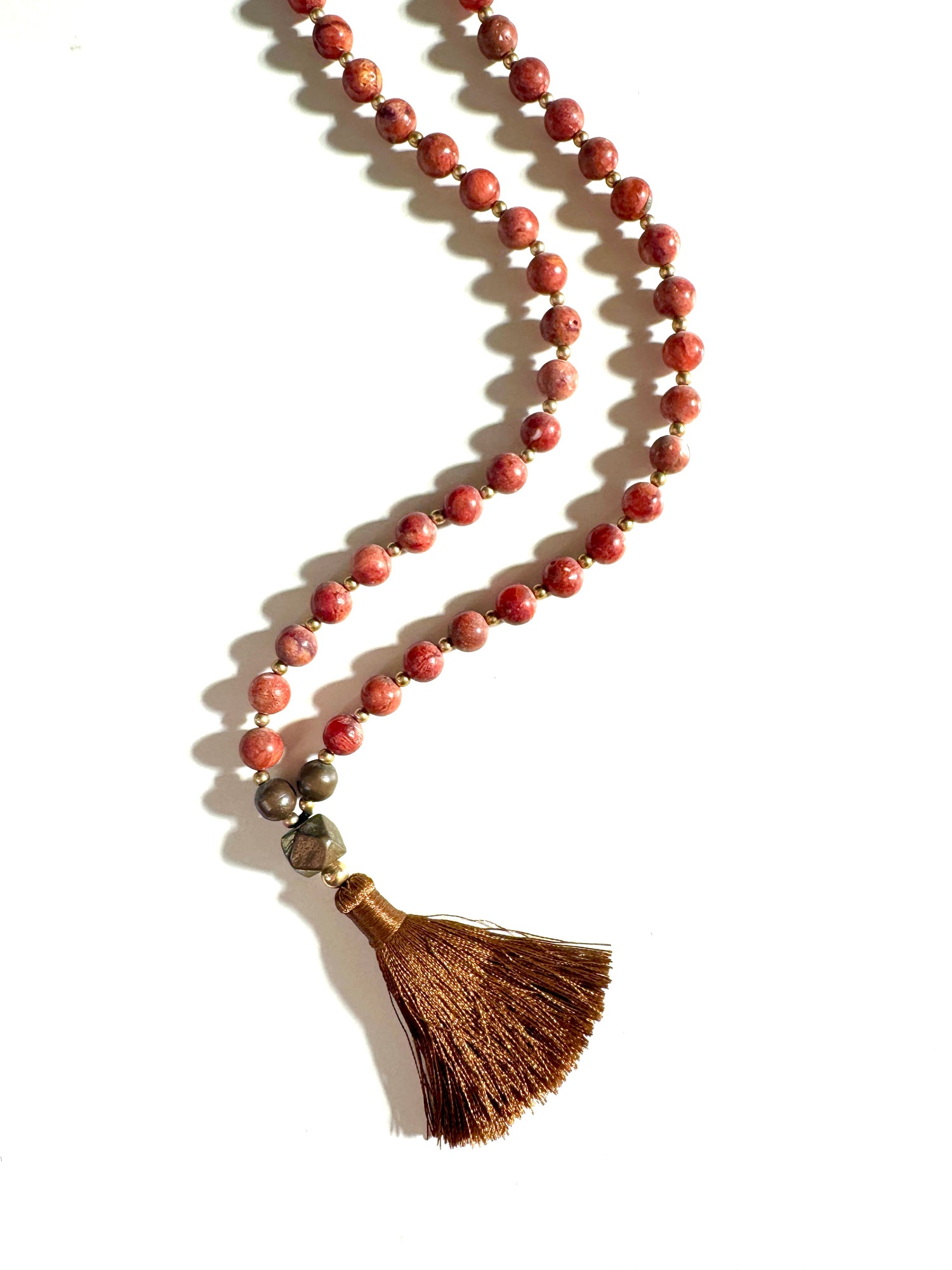 A mala necklace is a meaningful tool for meditation and mindfulness, featuring 108 beads traditionally used to count mantras, breaths, or intentions, crafted from natural materials like gemstones or wood.